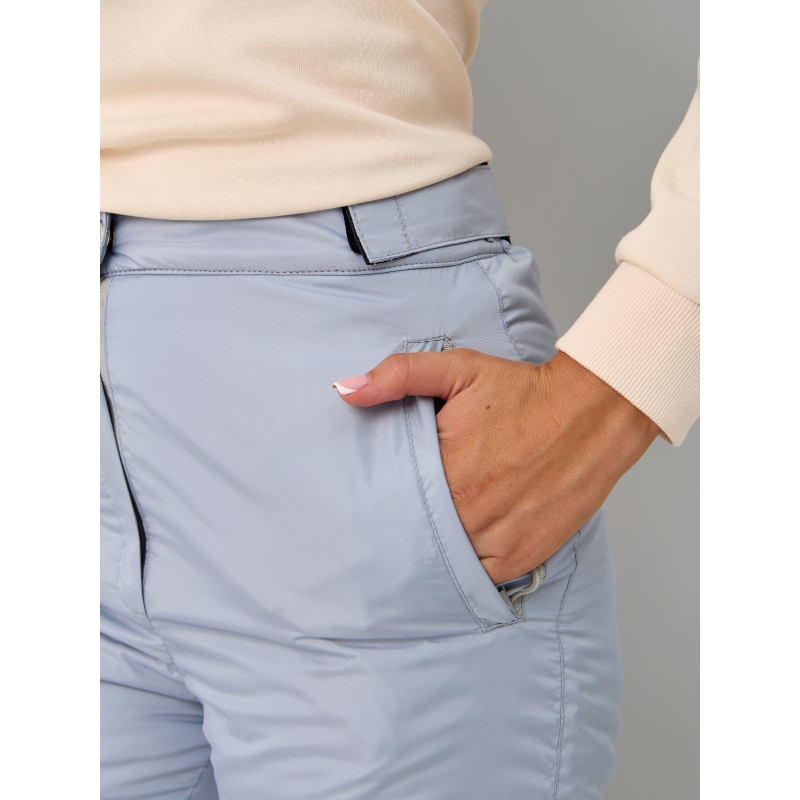 Утепленные женские брюки с высокой посадкой, для регулировки по линии талии имеется пояс, продетый через пластиковые рамки, который фиксируется на липучки. Застежка - молния, два глубоких прорезных кармана на молнии. Благодаря высокой спинке и возможности регулировки на поясе, талия визуально уменьшается, а Ваша поясница всегда в тепле