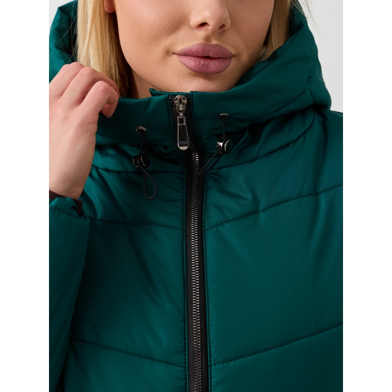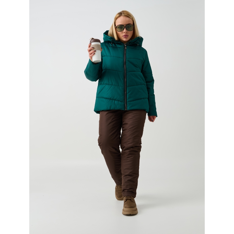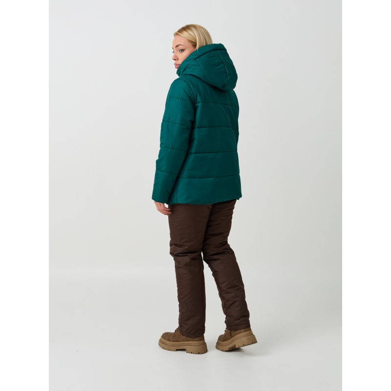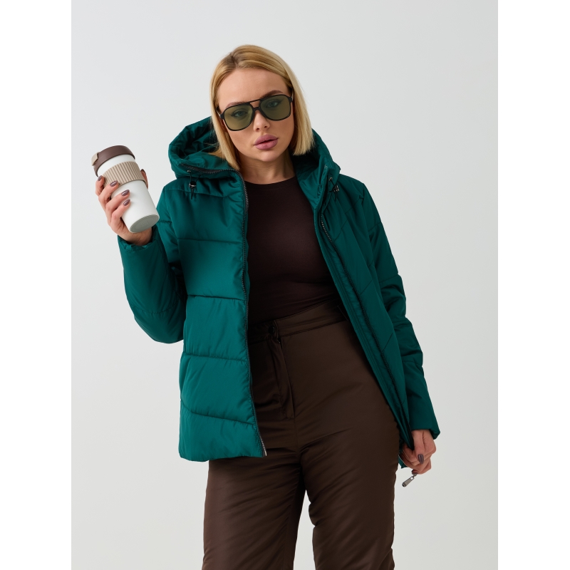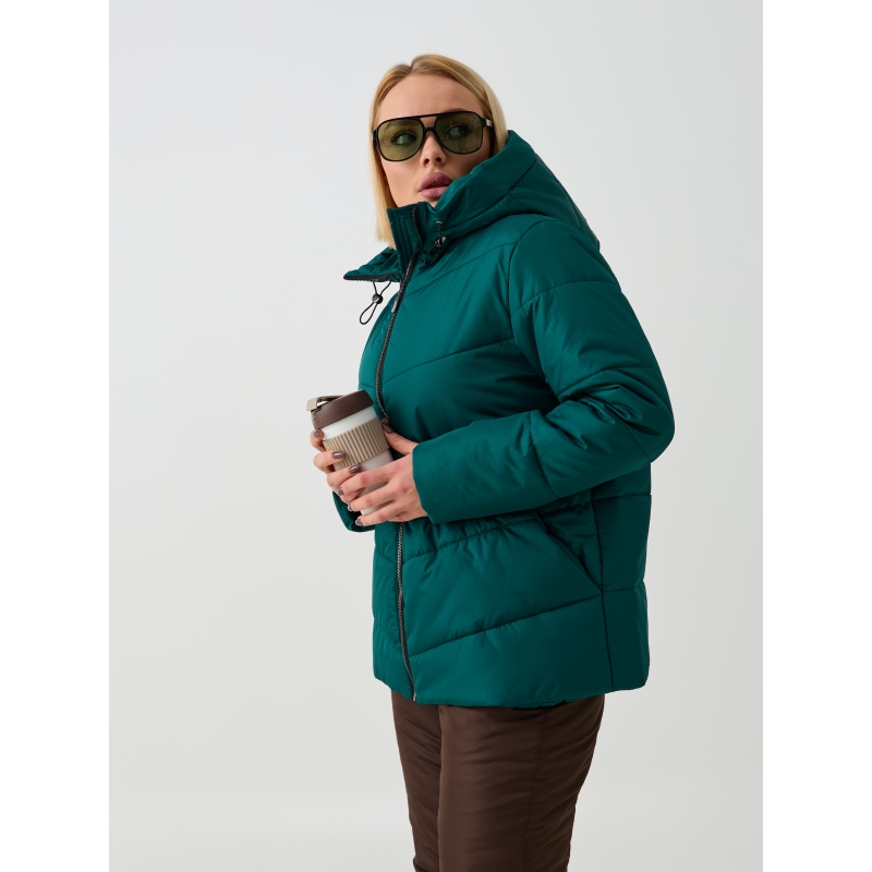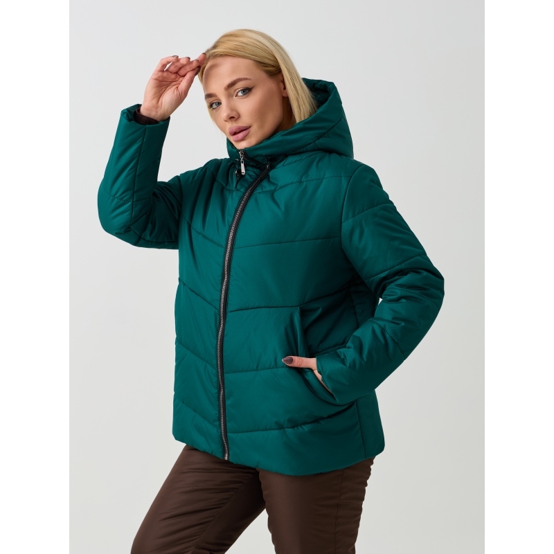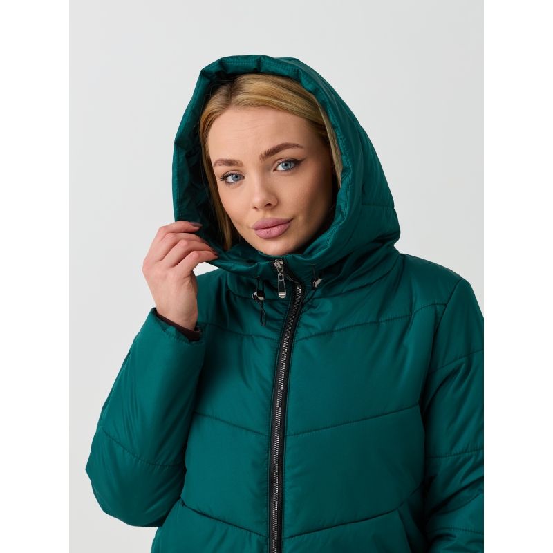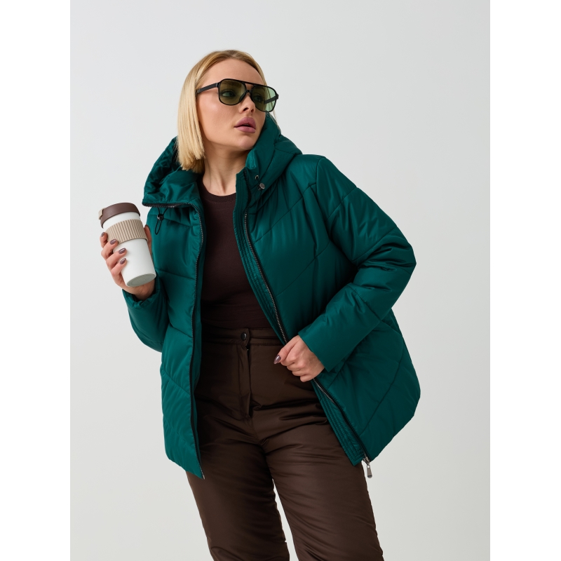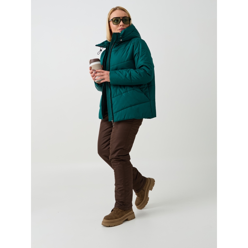 Удобная зимняя курточка в современном стиле имеет два вместительных боковых кармана в диагональных швах . Модель прямого силуэта красиво сидит по фигуре. Капюшон на кулиске и высоким воротником рассчитана на температуру от -5 до -20 градусов , утеплитель синтепон 300 гр идет одним полотном