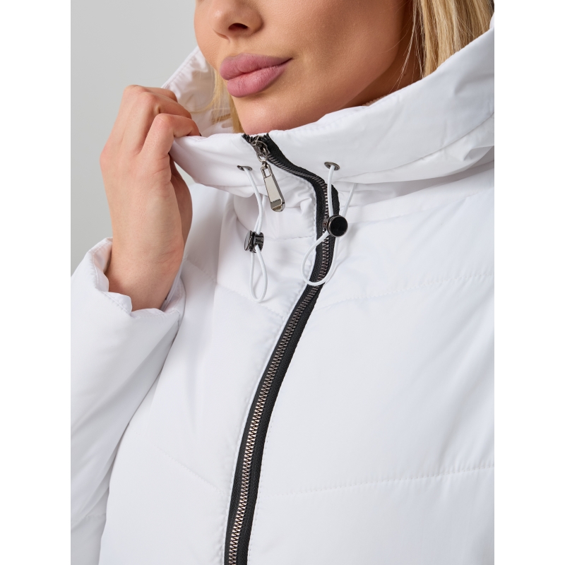 Удобная зимняя курточка в современном стиле имеет два вместительных боковых кармана в диагональных швах . Модель прямого силуэта красиво сидит по фигуре. Капюшон на кулиске и высоким воротником рассчитана на температуру от -5 до -20 градусов , утеплитель синтепон 300 гр идет одним полотном