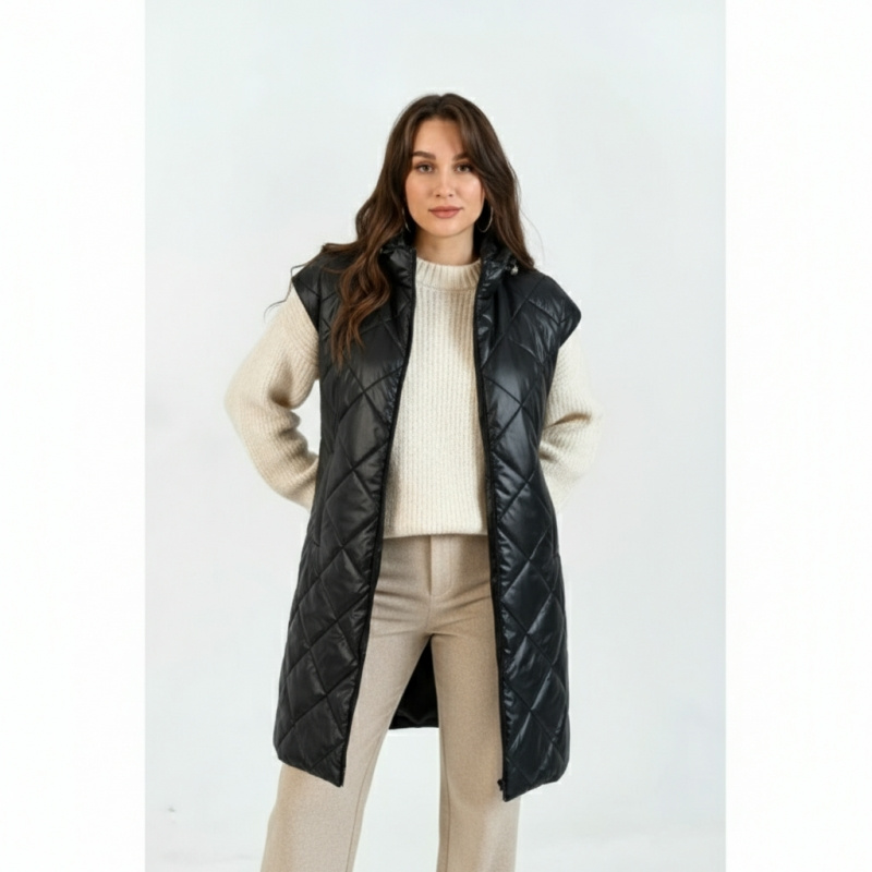 Теги: жилет удлиненный, жилет женский, жилет GG 006, жилет с капюшоном, жилет стеганный, жилет длинный, жилет длинный с кулисой