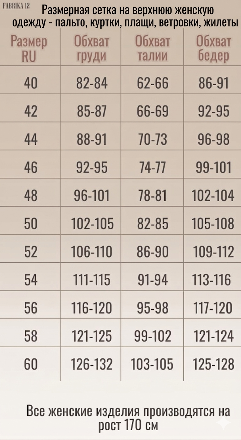 - При выборе товара просим строго руководствоваться нашими размерными сетками