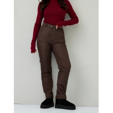 Утепленные женские брюки с высокой спинкой, цвет- шоколад
