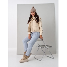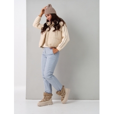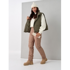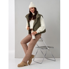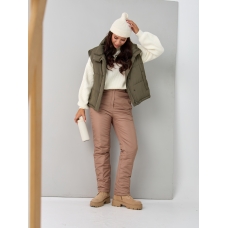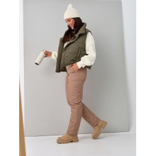 Утепленные женские брюки с высокой спинкой, цвет-капучино