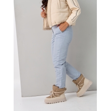 Утепленные женские брюки с высокой спинкой, цвет- светло-серый