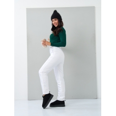 Утепленные женские брюки с высокой спинкой, цвет- белый